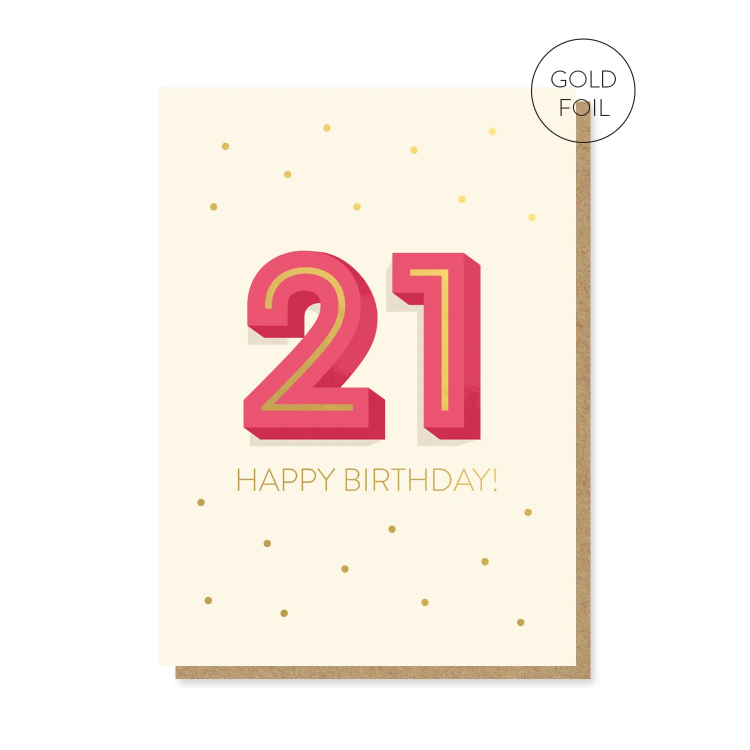 Celebrate the big 2-1 with this milestone birthday card, finished with satin gold foil!