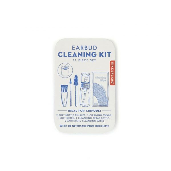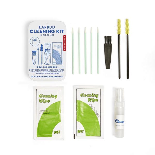 This eleven-piece kit has everything you need to keep your earbuds looking and sounding great. Kit includes: 2 soft bristle brushes, 5 extra fine cleaning swabs, 1 soft brush, 1 cleaning spray bottle, and 2 anti-static cleaning wipes in a convenient tin.