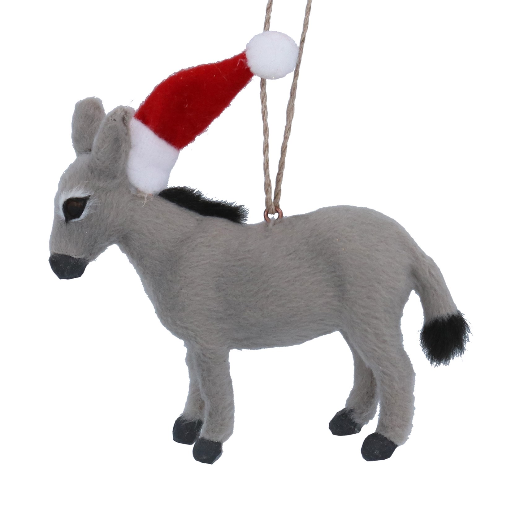 Faux Fur Hanging Dec 12cm – Donkey w Santa Hat