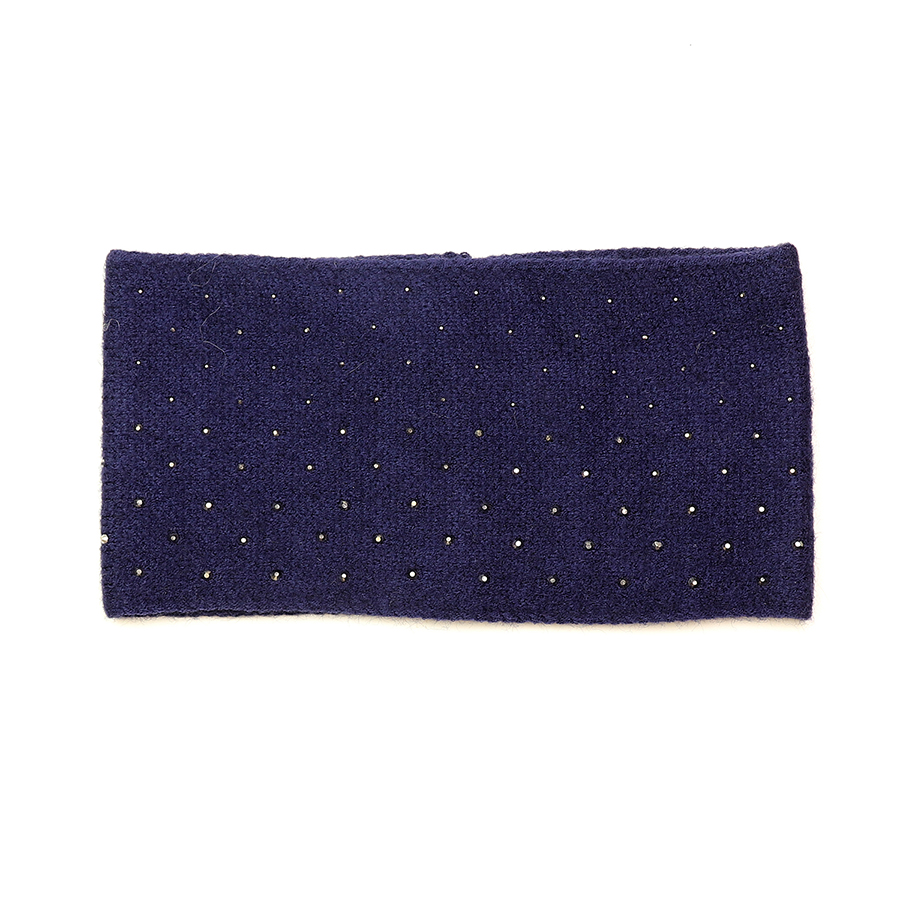Navy blue fine knit cosy wide headband with embellished detail