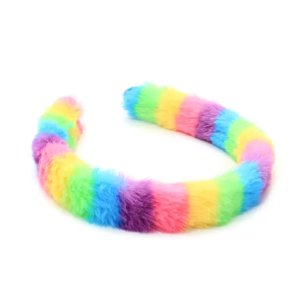• Rainbow fluffy faux fur covered aliceband