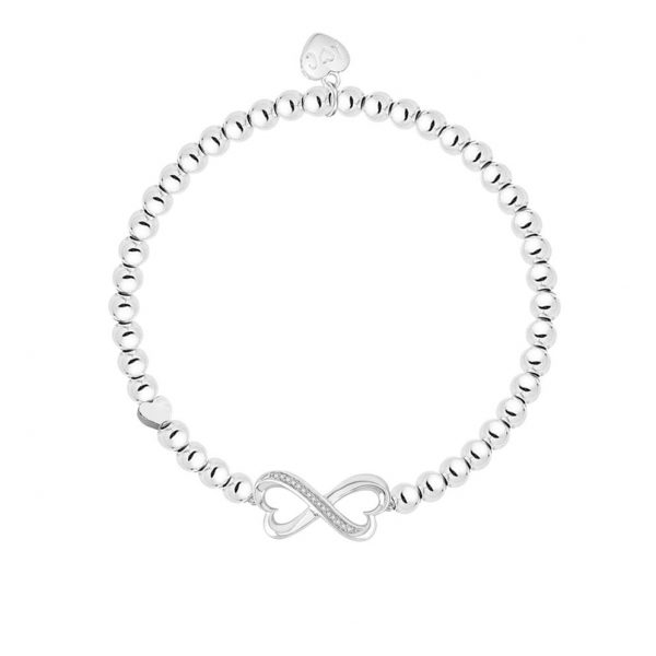 Pure silver plated double conjoined hearts presented on a 5 mm beaded stretch bracelet. The bracelet comes presented in a luxury gift box with a Just Because ‘You will forever be my always’ card.