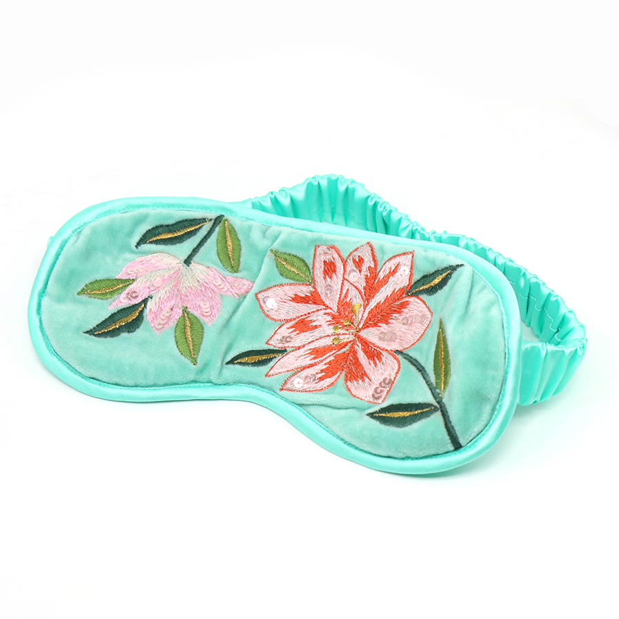 Turquoise Velvet Embroidered Lily Sleep Mask
