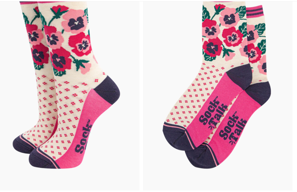 Crafted from naturally breathable bamboo, these summery ankle socks feature colourful pansy flowers. These beautiful socks are eco-conscious and feel luxuriously soft. Finished with a classic striped cuff for a comfortable fit.