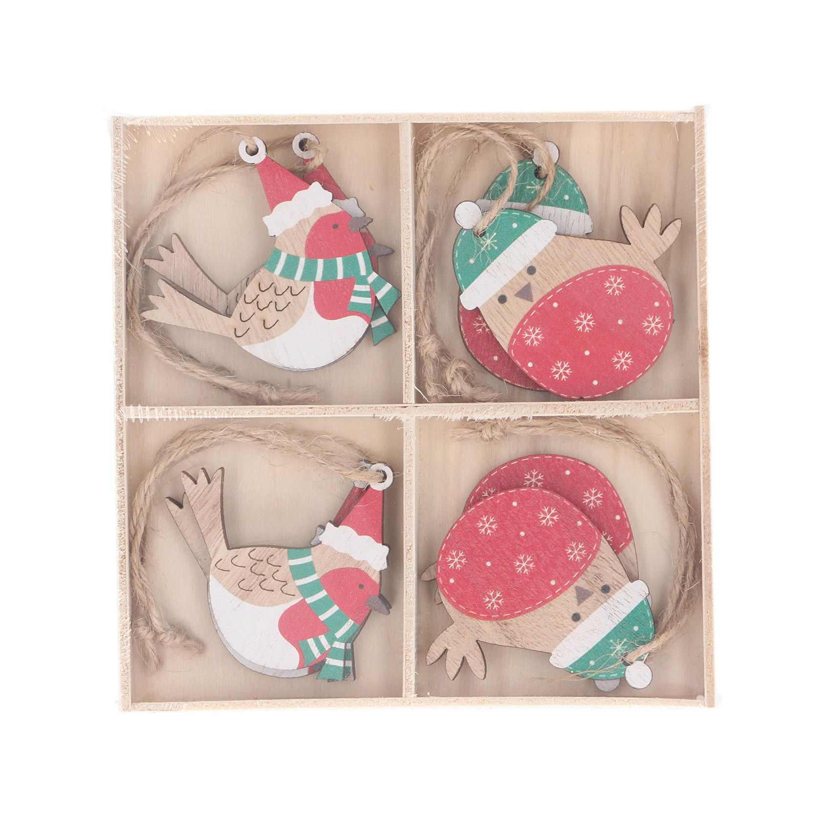 Box of 8 robin decorations or beautiful tags for presents.